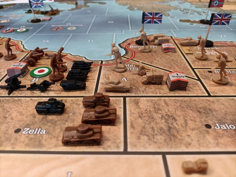 Os combates no Norte de África foram diferentes de qualquer outro na Segunda Guerra Mundial. Em Axis & Allies: North Africa, você comandará as forças do Eixo (Alemanha e Itália) ou dos Aliados (Reino Unido e, eventualmente, os Estados Unidos) em uma campanha que poderá novamente capturar a imaginação de todo o mundo. . Intercepte comboios inimigos em direção aos portos do Norte da África... enquanto protege os seus. Prove sua habilidade logística mantendo suas forças abastecidas. Acima de tudo, mostre sua engenhosidade como general e você poderá mudar o curso da história e, finalmente, ganhar o respeito de seus oponentes. Eixo e Aliados: Norte da África apresenta dois cenários: O Último Empurrão de Rommel: A Raposa do Deserto chocou o mundo quando seu pequeno Afrika Korps e os italianos avançaram para Tobruk e os portões do Cairo. A campanha completa de 14 rodadas. Operação Tocha: Os americanos finalmente chegam em novembro de 1942, espremendo o Eixo em duas direções, de volta ao seu último reduto na Tunísia. Uma experiência mais curta de 8 rodadas.