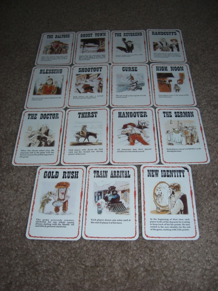 High Noon: cada jogador perde 1 ponto de vida no início do seu turno. Esta deve ser sempre a última carta e permanece em jogo até o final do jogo.