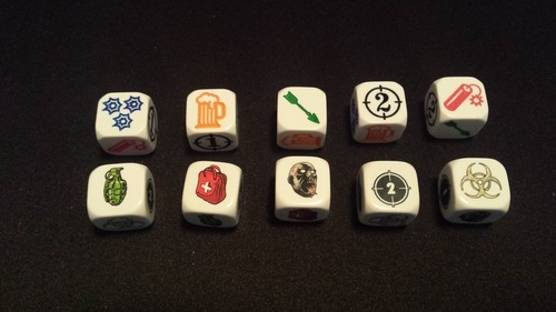 Cada jogador recebe também uma carta de personagem que lhe concede um poder especial no jogo. Em um turno, um jogador pode rolar os cinco dados até três vezes, utilizando-se dos resultados dos dados para atirar nos jogadores vizinhos, aumentar o alcance de seus tiros, curar os seus (ou de outra pessoa) pontos de vida, ou colocá-lo ao alcance dos zumbis, que são representados por nove fichas de zumbis no centro da mesa.
