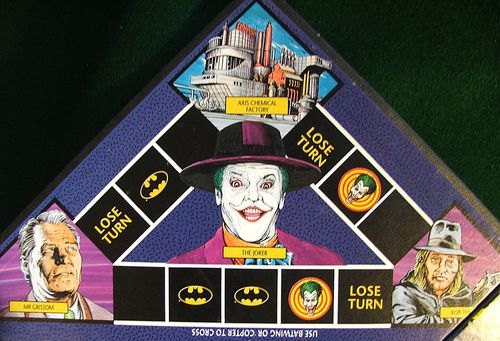 Este é um jogo baseado no filme de 1989 estrelado por Jack Nicholson e Michael Keaton, cujas imagens figuram nos gráficos do tabuleiro do jogo. Os jogadores podem optar por ser um "Batman" ou um "Coringa", que determina seus lugares e objetivos iniciais. Batman deve viajar da Mansão Wayne para a Batcaverna, e Coringa deve viajar do apartamento de Grissom para o Eixo Químico. Ao chegar, uma carta de Destino é escolhida e o primeiro jogador a chegar ao seu destino vence. Existem cartas sacadas em vários espaços (poder, direção e batalha) que dão vantagens e os jogadores podem lutar contra um tipo de personagem oposto com um teste de rolagem de dados para ganhar movimentos e cartas extras.