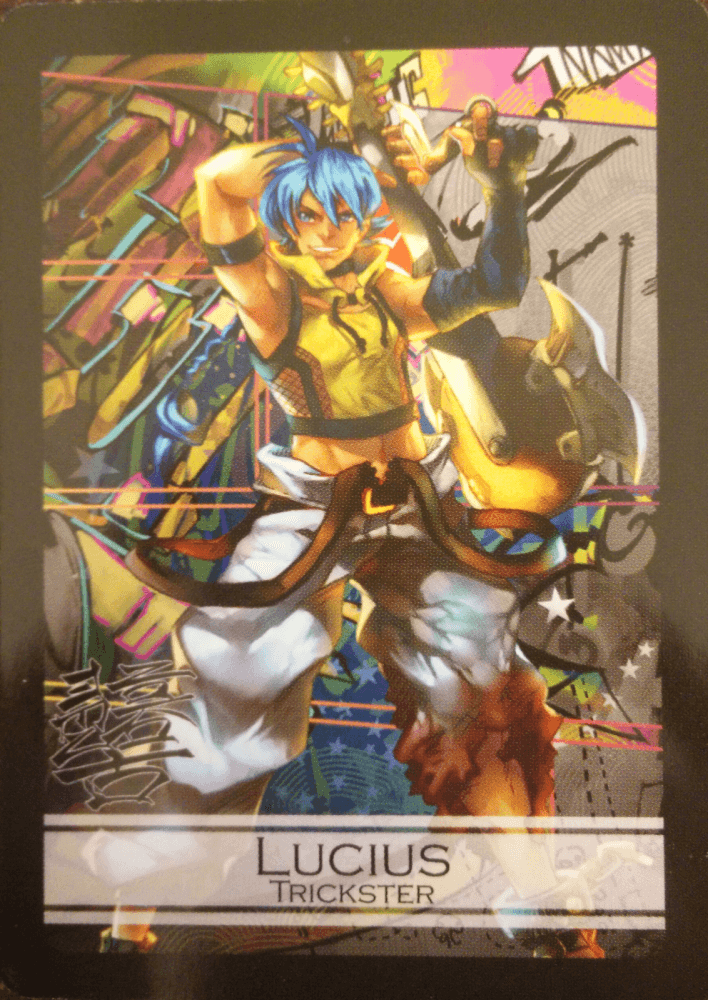 Um personagem promocional cruzado criado pela Nokomento (Eunice Tiu), Lucius é um lutador de brawler acumulado com três cartas de grilhões que todos começam o jogo trancado. Sempre que Lucius aturdoa seu oponente com um ataque, ele pode optar por não causar nenhum dano ao desbloquear um dos seus grilhões, concedendo-lhe um aumento estatístico permanente para o resto do jogo. Isso, combinado com seus trapaceiros e estilos escorregadios, permite que ele ganhe lentamente o poder até que ele possa esmagar seus oponentes com o ataque combinado de ataques imprevisíveis ao lado da pura superioridade numérica.