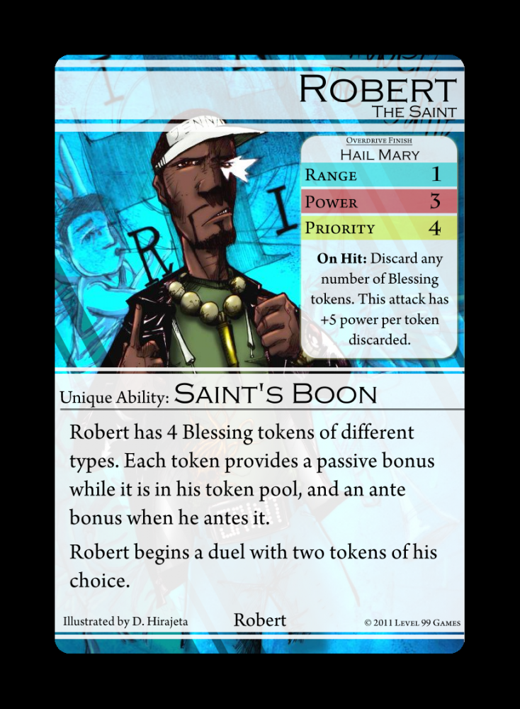 Robert luta acumulando marcadores de fichas ao longo do tempo. Cada token lhe dá uma poderosa habilidade passiva e pode ser gasto para garantir uma habilidade de uso único mais forte.