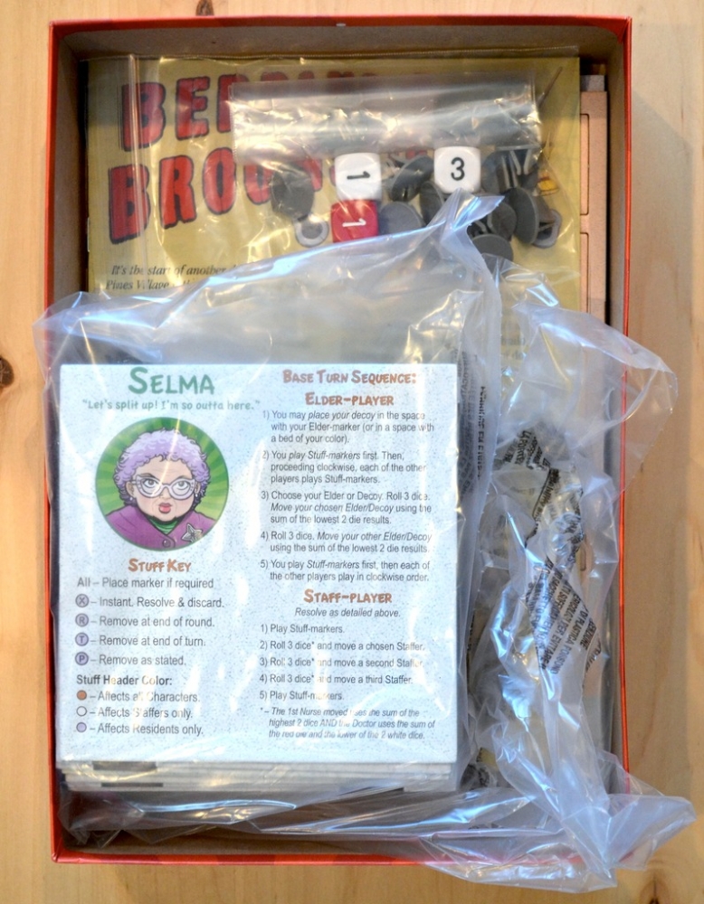 Em Bedpans & Broomsticks, todos, exceto um dos jogadores, são os anciãos da casa de repouso Shady Pines Village. Vocês todos estão tentando chegar a uma das três saídas do edifício. Outro jogador controla a equipe de médicos, enfermeiros e atendentes que estão tentando impedi-lo e devolvê-lo para sua cama.