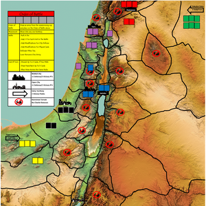 As vantagens culturais incluem carros egípcios, gigantes filisteus, elefantes de guerra da Babilônia, intervenções celestiais israelenses, forças locais adicionais cananeus e unidades profissionais assírias.