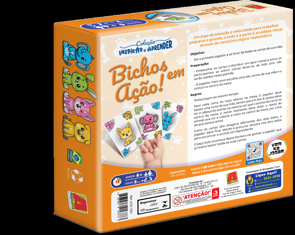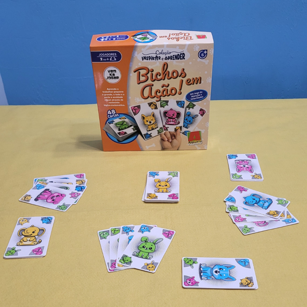 Bichos em Ação da Coleção Inspirar e Aprender é um emocionante jogo de atenção e velocidade que trabalha conceitos de pequeno e grande, o todo e a parte, além de desenvolver acuidade visual e raciocínio lógico.