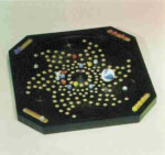 Preparação: Coloque o tabuleiro no meio da mesa. Pegue um canto e coloque as bolinhas de sua cor no sulco da borda. Cada jogador começa com 5 bolinhas. A sexta é sobressalente, mas você pode deixar na ranhura para marcar qual jogador é de qual cor.