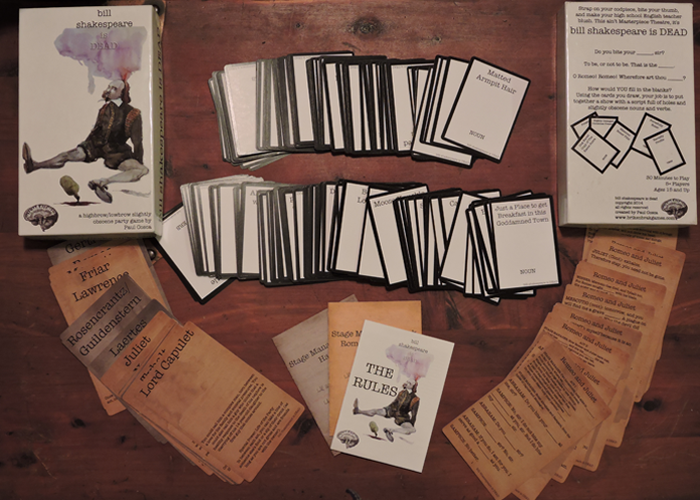 Bill Shakespeare is Dead é um jogo festivo intelectual / ligeiramente obsceno para pelo menos 5 jogadores. Existem variantes de 3 e 4 jogadores.