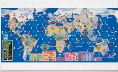 Da editora: "Use o mapa para expandir seu jogo Bios Megafauna e cobrir o mundo inteiro (em vez de apenas a América). Ou use-o para adicionar luxos (tabaco, seda, turistas, chá, diamantes e muito mais) ao seu jogo Origins. Ou use-o para um jogo combinado empolgante, com humanos voadores e semelhantes a toupeiras, capazes de domesticar uma nova forma de aquicultura de 'sushi' ou montar orcas em batalha."
