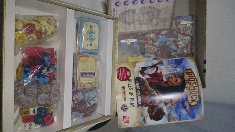O jogo de tabuleiro, baseado no universo da Irrational Games – desenvolvido do vídeo game BioShock Infinite, virá com 52 miniaturas, cartas, dados e um tabuleiro de jogo colorido. Uma dessas miniaturas – o Handyman – vem com o jogo de vídeo game nas edições Premium e Ultimate Songbird.
