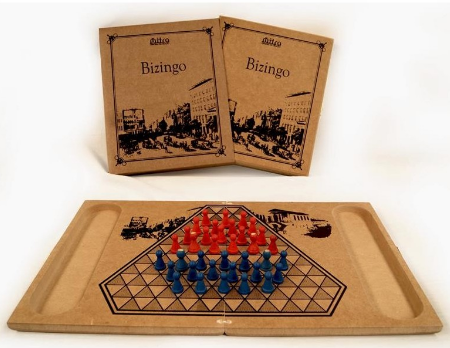 Bizingo é um jogo de estratégia abstrata para dois jogadores. Sua origem é incerta, porém, sabe-se que foi criado em algum momento na década de 1850 nos Estados Unidos. Uma das características peculiares deste jogo é o seu tabuleiro em forma triangular que contém casas, também triangulares, que são alternadas entre casas escuras e casas claras. Outra característica peculiar é que as peças dos jogadores movimentam-se por casas diferentes, isto é, um jogador anda pelas casas escuras e o outro jogador anda pelas casas claras.