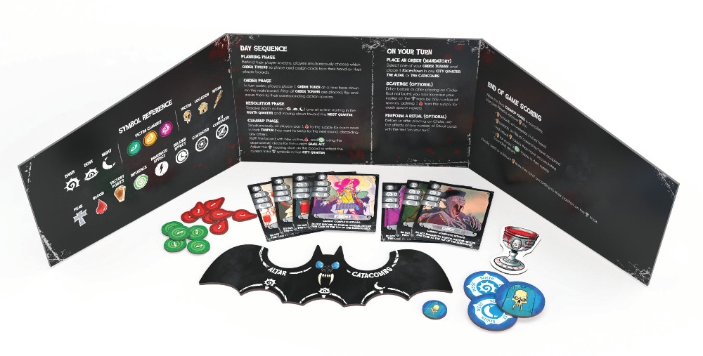 Para construir sua nova ordem, você deve gerenciar uma mão em evolução contínua de cartas de vampiro sob seu comando, enviando-os por toda a cidade para visitar locais, realizar rituais arcanos, enfeitiçar vítimas e recrutar novos vampiros, ao longo de nove rodadas (dias ) Todas essas atividades assumem a forma de cartões ativados por seus tokens de pedido no tabuleiro, permitindo que você acumule recursos essenciais, execute ações úteis e ganhe pontos. No entanto, conforme seu poder cresce, o mesmo acontece com o medo dentro da cidade, tornando sua busca cada vez mais difícil com o passar dos dias.