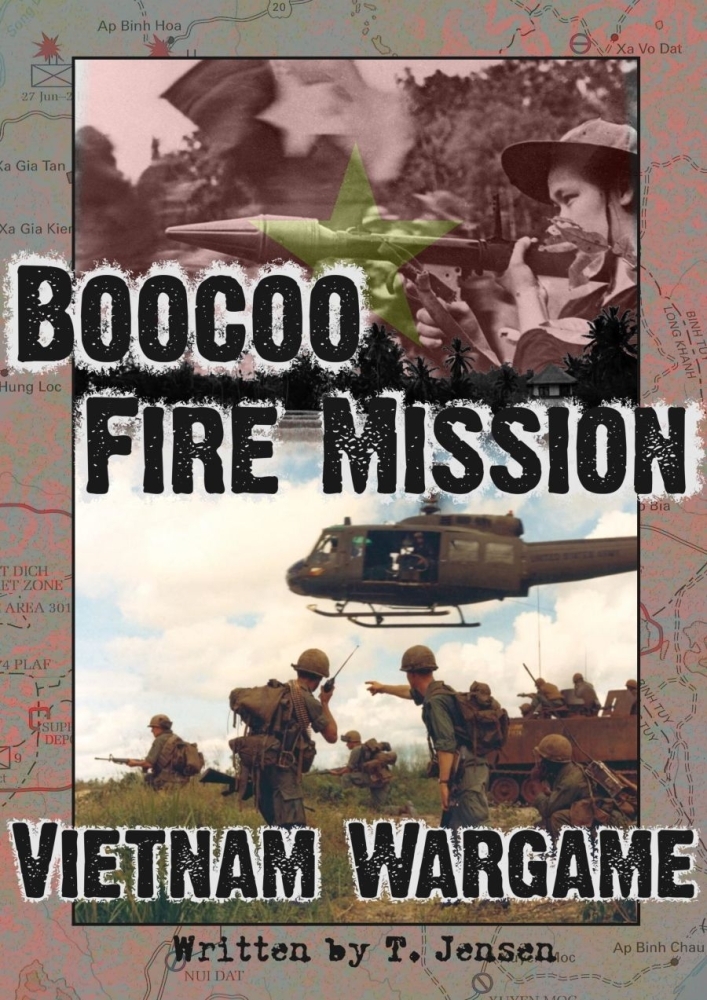 Boocoo Fire Mission é o resultado de 3 anos de pesquisa e testes, baseado em relatos de primeira mão da guerra para criar um wargame com muito sabor histórico. Um sistema simples e eficaz de movimento oculto permite aos jogadores realmente suarem enquanto tentam descobrir se é seguro cruzar aquele campo aberto à frente. Planos geralmente não sobrevivem ao contato com o inimigo, e várias tabelas de imprevistos ajudam a criar uma experiência narrativa que vai além do típico wargame de "mover e atirar".