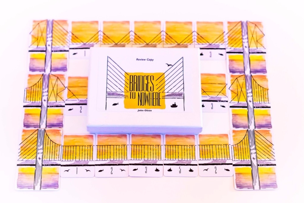 Bridges to Nowhere é um jogo divertido e envolvente que é tão bonito quanto parece. Com uma jogabilidade elegante que desafia os jogadores a tentar serem mais espertos que o adversário a cada compra de cartas, Bridges of Nowhere traz diversão para a mesa.