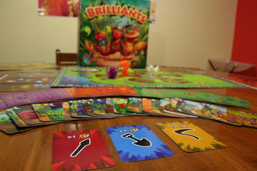 Brilliants é um jogo onde os jogadores tem alternativas flexíveis e executa uma ação: ou bota um ovo, move uma formiga ou desloca um predador. O jogo é separado entre dias e noites e uma rodada termina quando todos movimentaram todas as suas formigas, colocou um ovo, e moveu um predador uma vez. Existem três tipos de formigas no jogo, guerreiro, engenheiro e fazendeiro e três predadores, uma aranha, um gafanhoto e uma minhoca. Cada tipo de formiga reúne um tipo de recursos, quer insetos ou plantas, e os predadores podem destruir tiles desses recursos específicos. Existem três insetos, plantas e tipos de argilas diferentes.