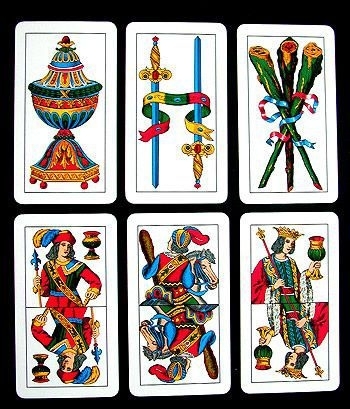 - "chiamata", jogado com 5 jogadores (3 contra 2). Tem uma aposta inicial na pontuação final esperada. Quem aposta a quantia mais alta paga um cartão, cujo dono se torna (secretamente) seu parceiro e joga com o autor da chamada contra os outros 3 jogadores. Então os jogadores (exceto o chamado) não sabem exatamente quem são os oponentes e os parceiros.