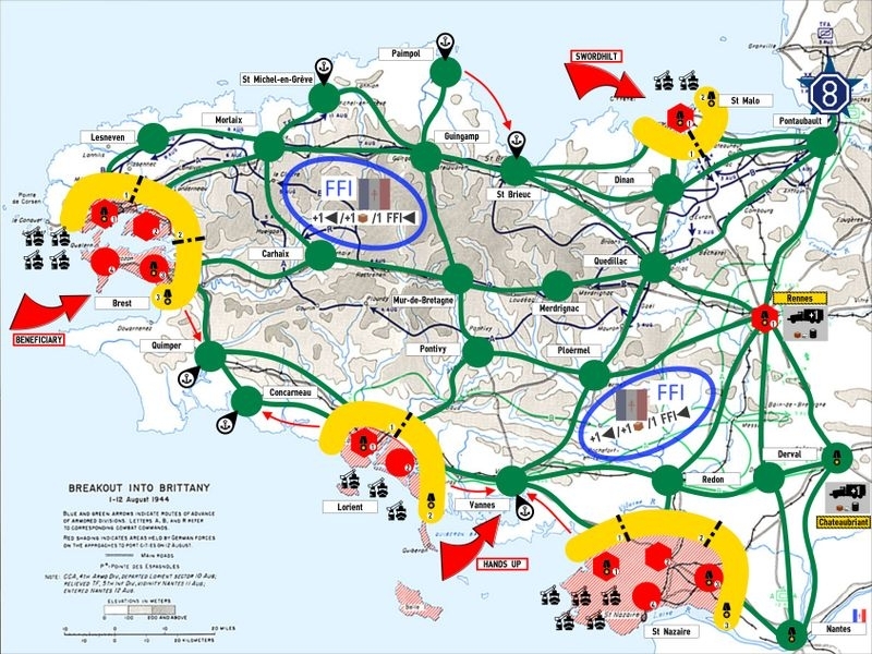 O 8º US Corps of Troy Middleton tem a missão de libertar a região e garantir os portos bretões para usá-los como bases de abastecimento.