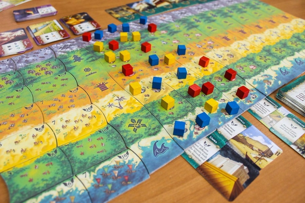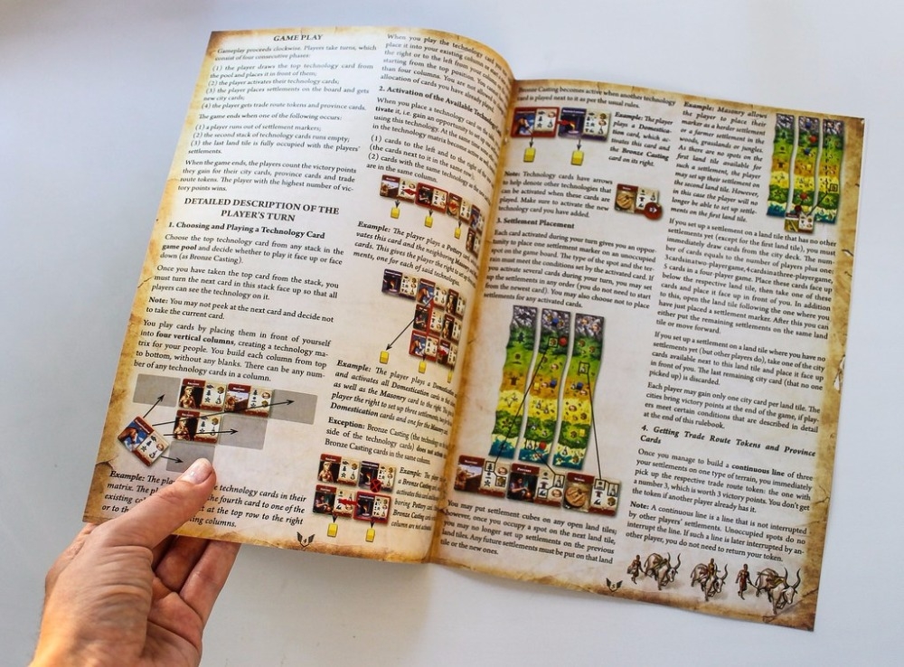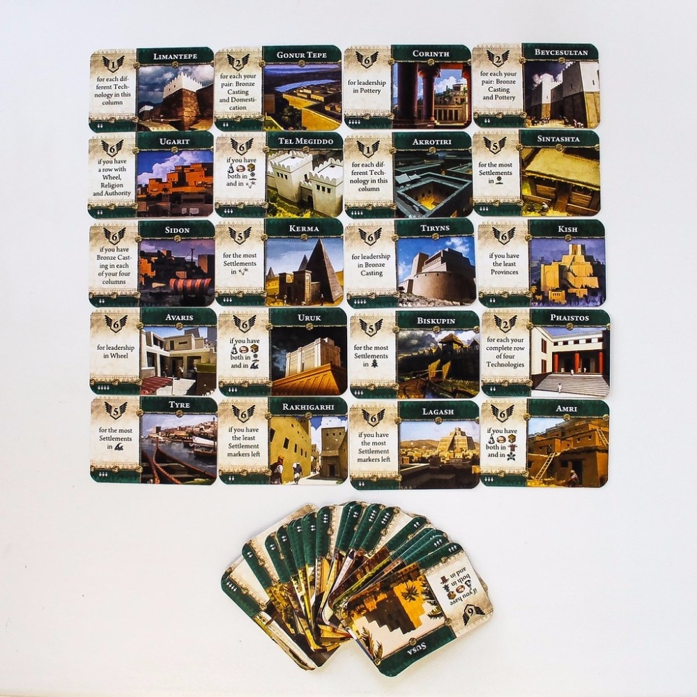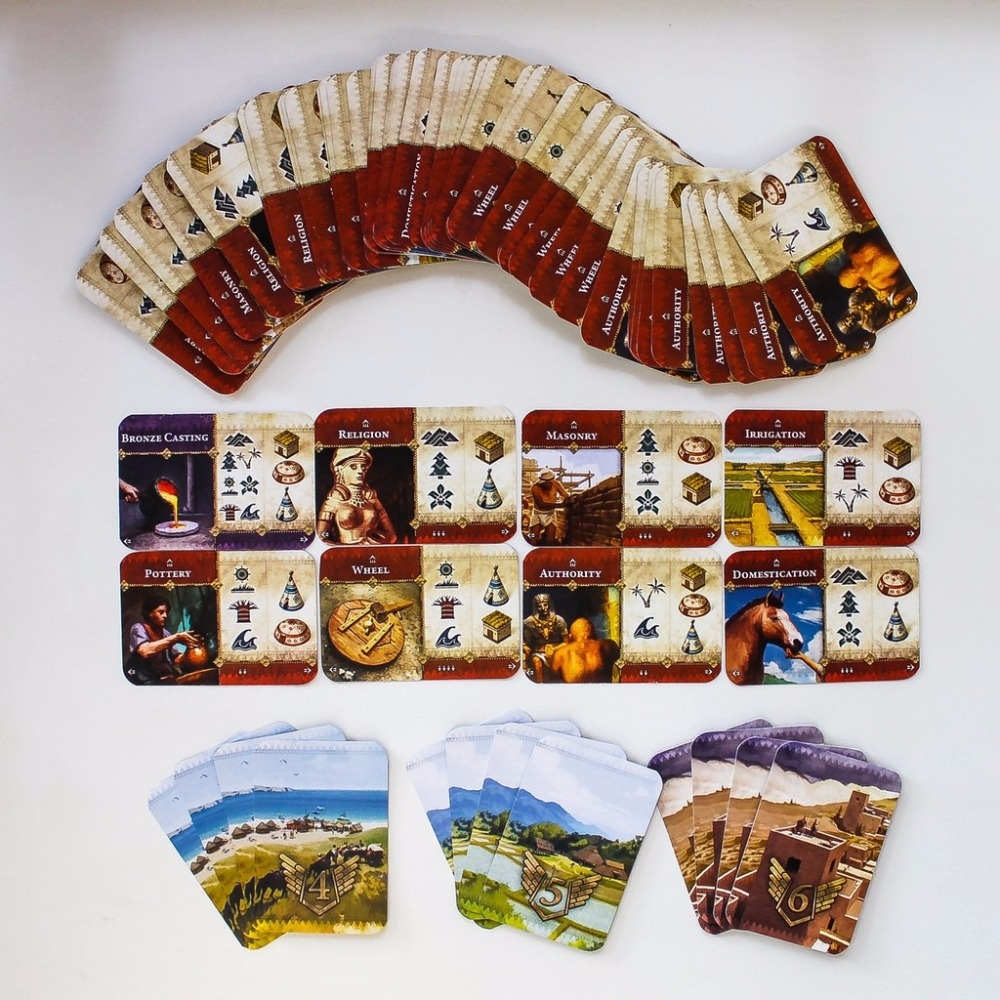 A área de jogos em Bronze é dividida em sete paisagens: montanhas, florestas, planícies, savanas, selvas, desertos e costas. Usando cartas de tecnologia, os jogadores encontram assentamentos, tentando ocupar a maioria dos territórios de uma paisagem particular. A luta mais brutal é em torno das rotas comerciais, que traz não apenas dinheiro no mundo dos anos BC, mas também notícias dos vizinhos. Quanto mais assentamentos em uma paisagem, mais rico é a caravana comercial que irá ao seu povo. Tudo isso traz pontos de vitória que determinarão o resultado da corrida.