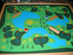 Bumper Golf é um jogo de golfe. O tabuleiro do jogo retrata um curso inteiro de golfe de 18 buracos. Jogadores atiram suas 'bolas' (discos de madeira) a partir de pontos numerados e apontam para o 'buraco' com o número equivalente.