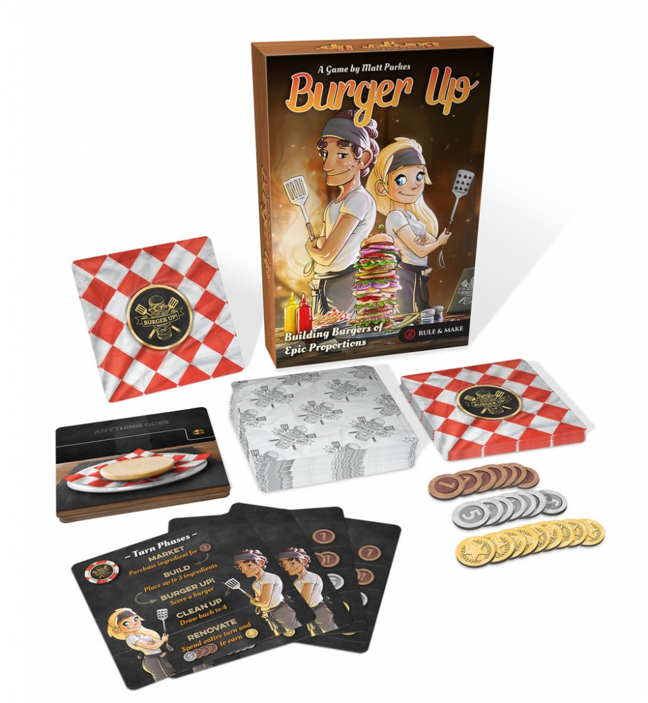 Burger Up é um jogo de cartas sobre a arte de fazer hambúrguer. Atenda aos pedidos, ganhe prestígio e seja o melhor chef de hambúrguer das redondezas!