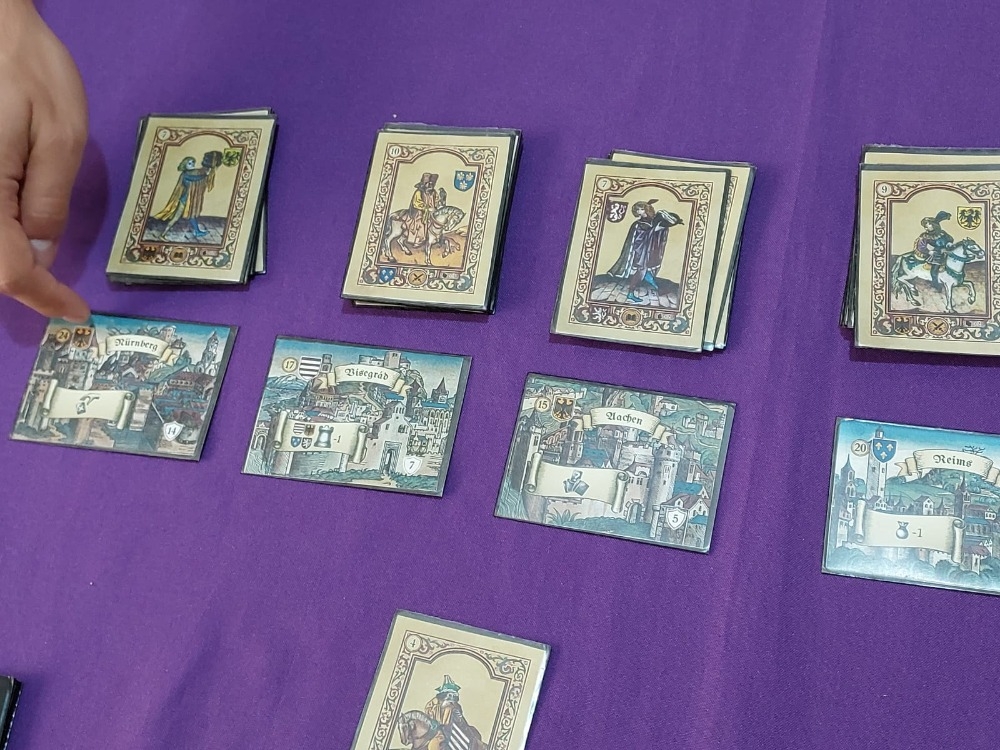 Baseado nas Crônicas de Nuremberg de 1493 de Hartmann Schedel, "Burgus" é um jogo cartas para 2 a 4 jogadores que mistura mecânicas de carteado como vaza, fishing e rummy, com mecânicas de construção de baralhos e construção de motores, aliando as mais belas xilogravuras medievais.