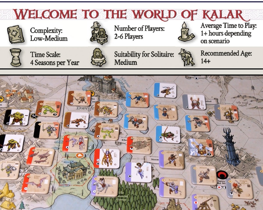1º de março” Exércitos e heróis através de feitiços enormes e cuidadosamente detalhados. Explore um vasto e detalhado mundo de fantasia que abrange quatro mapas de jogo montados com seis reinos únicos e dezenas de tipos de tropas. Projetado e ilustrado pelo aclamado artista de fantasia, Christopher Moeller!