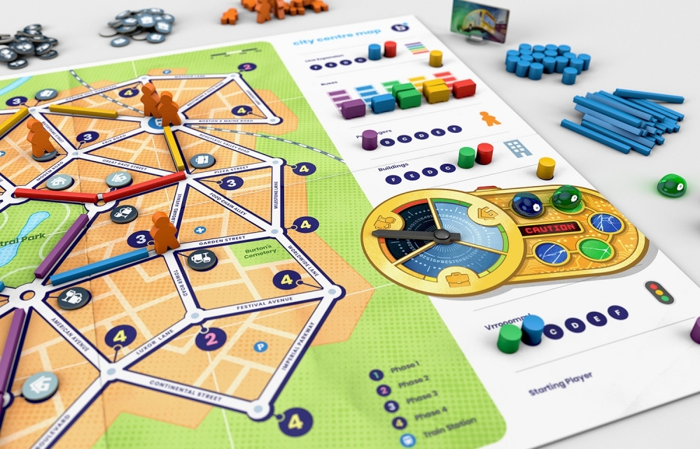 Os jogadores podem comprar mais ônibus (eles começam com um), construir sua rota de ônibus, trazer novos passageiros para a cidade (via trens), expandir a cidade, adicionando mais edifícios, e dirigir seus ônibus.