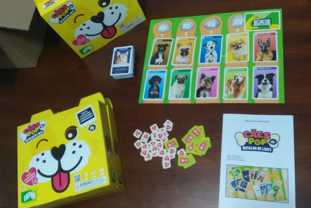 Cães Pop Batalha de Likes é um jogo de cartas em que os jogadores devem coletar o maior número de seguidores possível.