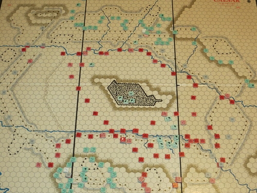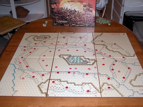 O grande mapa de 33"x28" retrata a cidade de Alesia e todas as obras construídas por César. Os gauleses têm uma pequena força presa na cidade, incluindo Vercingetorix, bem como uma grande força que é configurada em áreas fora do tabuleiro. O jogador gaulês deve revelar as zonas que ocupa fora do tabuleiro com pelo menos uma unidade, mas não precisa dar mais informações.