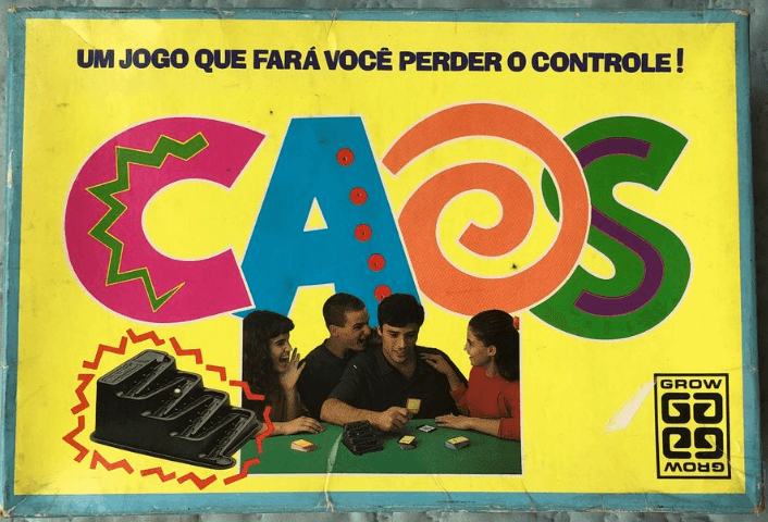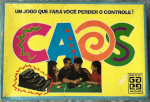 Caos é um jogo de cartas onde os jogadores precisam formar palavras com a letra, o assunto e com a quantidade, definida pelas cartas sacadas.
