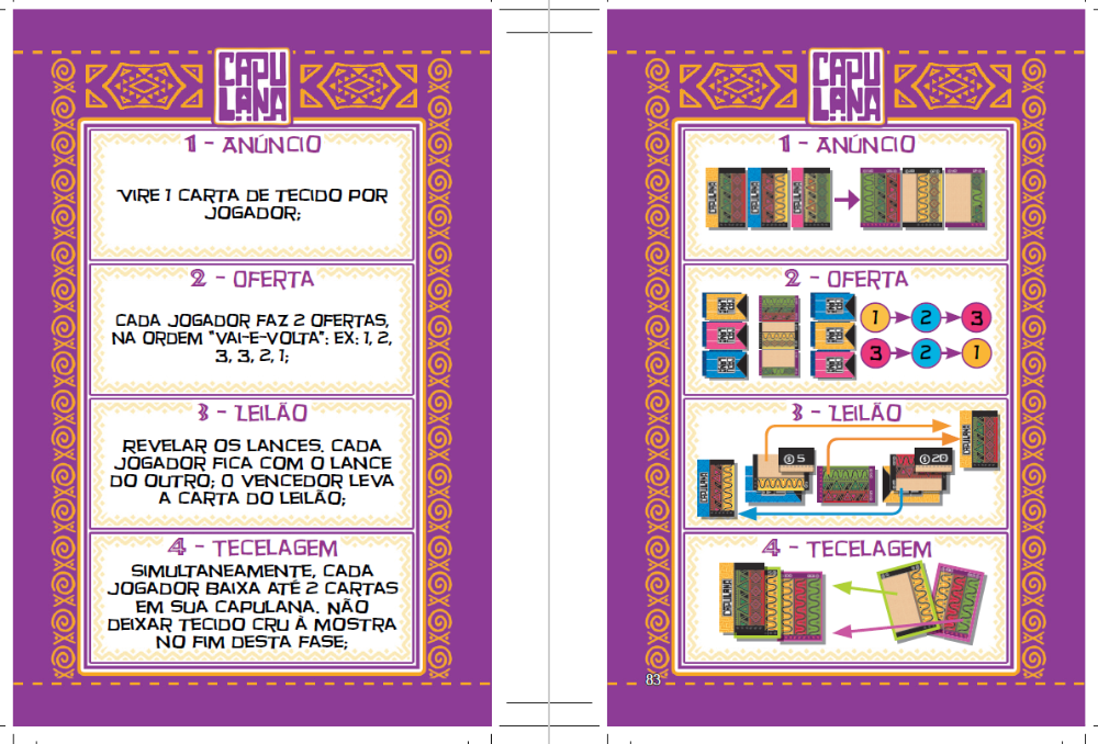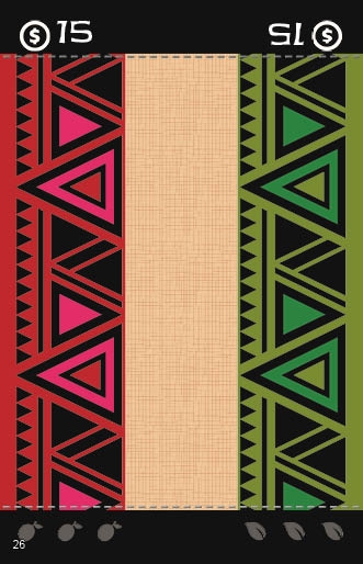 Capulana é um jogo de negociação e montagem de padrões que celebra o tecido tradicional de Moçambique: os jogadores disputam tiras coloridas, trocam entre si e costuram.