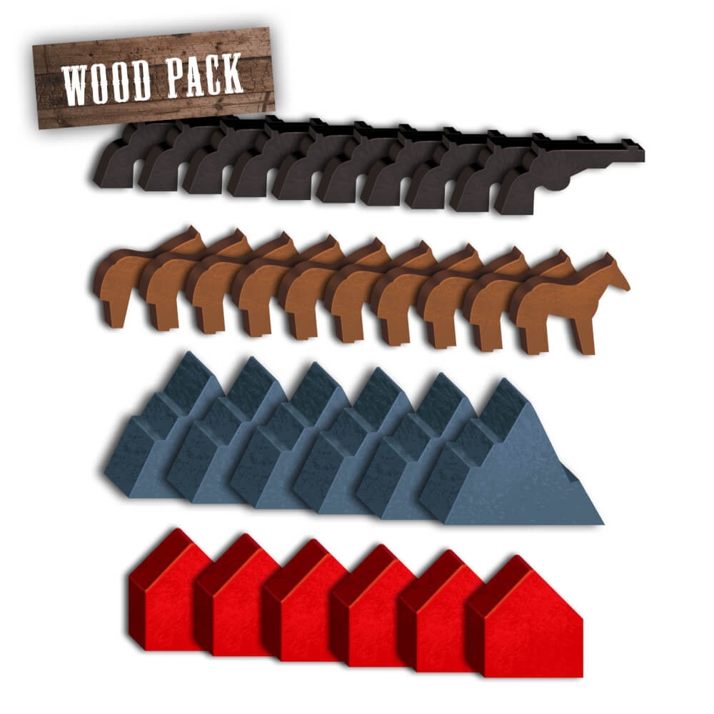 Aprimore seu jogo de Carson City com este belo conjunto de peças de madeira! O conjunto inclui: