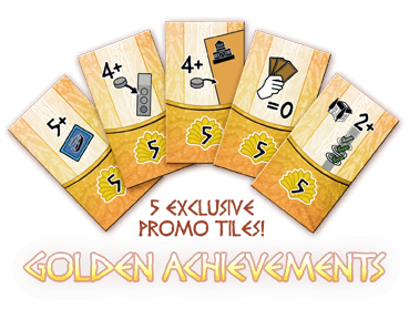 Os Golden Achievement Tiles oferecem maneiras adicionais para os jogadores ganharem pontos no final do jogo ou, em troca do potencial de ganhar pontos extras, os jogadores podem fazer uma jogada adicional durante o jogo.