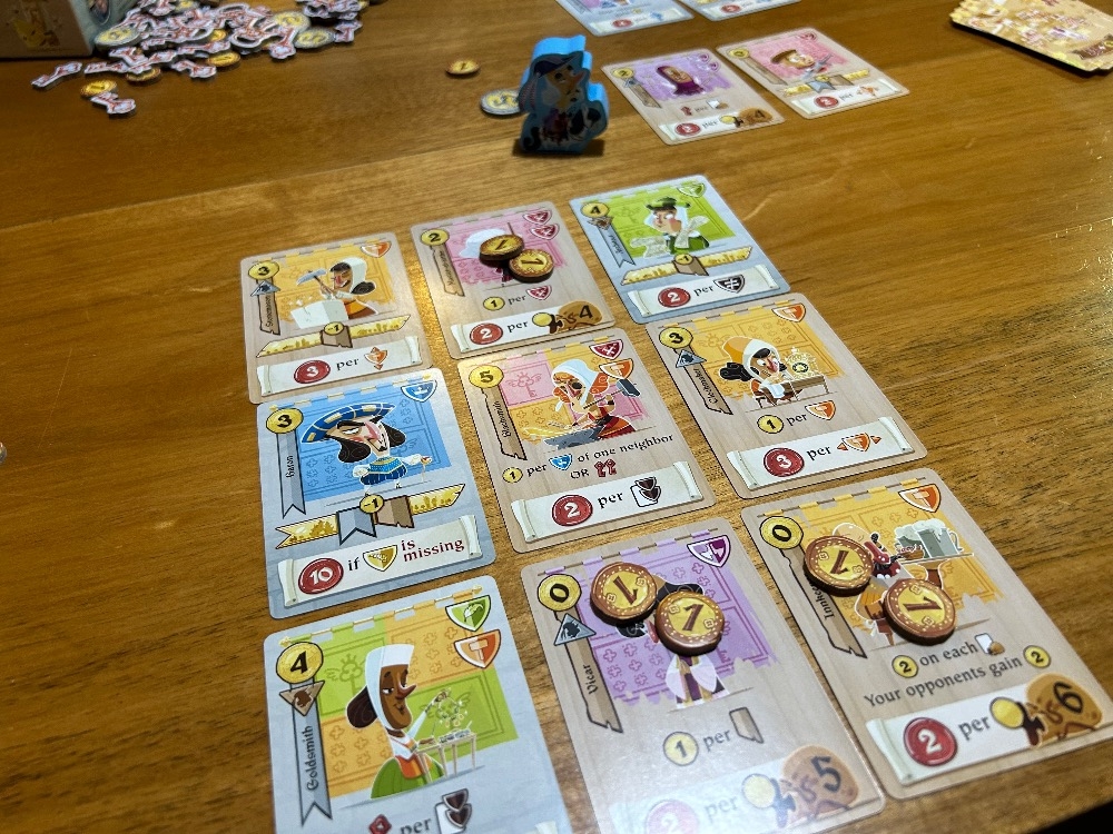 Cada jogador gastará moedas para selecionar 9 cartas de 2 mercados abertos na mesa (a cidade inferior e a superior), criando ao longo do jogo um quadrado 3x3 de pessoas interagindo entre si para acionar efeitos instantâneos e bônus de final de jogo.