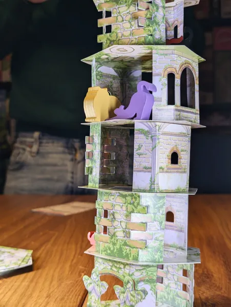 Cabe a você e aos outros jogadores construir a torre vocês mesmos, o que exigirá um ato de equilíbrio constante de paredes incompatíveis e Amigos Felinos em movimento.