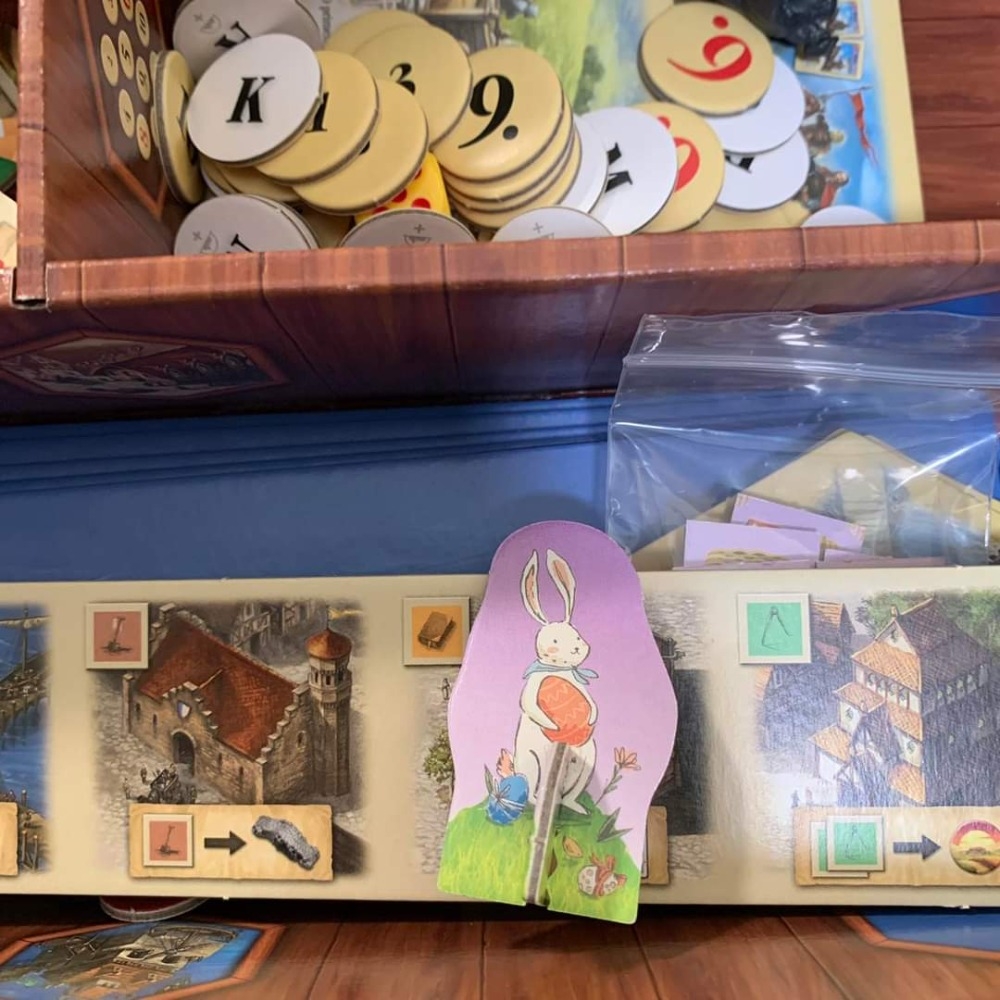 34 cartas de desenvolvimento (20 cartas de cavaleiro, 9 cartas de progresso [3 Invenção, 3 Monopólio e 3 Construção de Estradas], 5 cartas de pontos de vitória)
