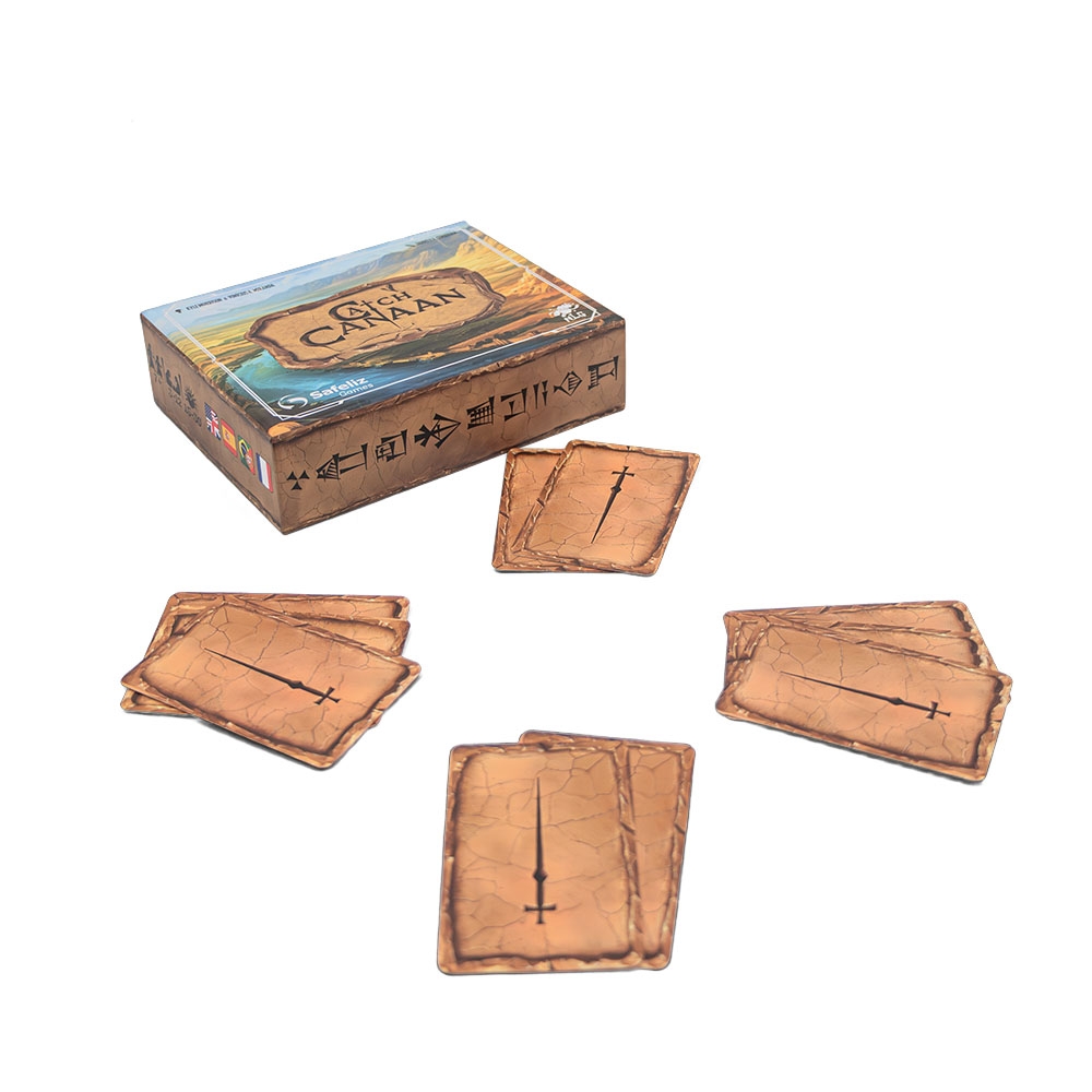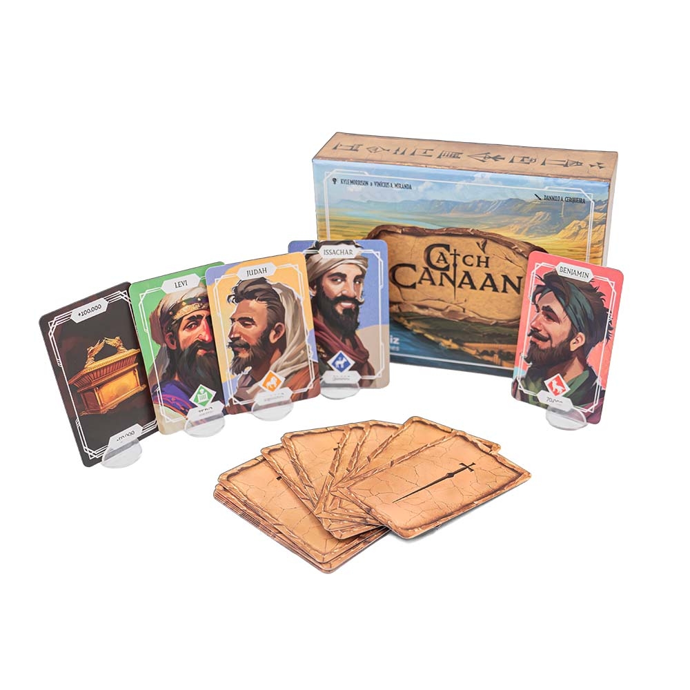 Catch Canaan desafia cada jogador a reunir todas as cartas de uma tribo, conquistar áreas e expandir seu território na Terra Prometida.