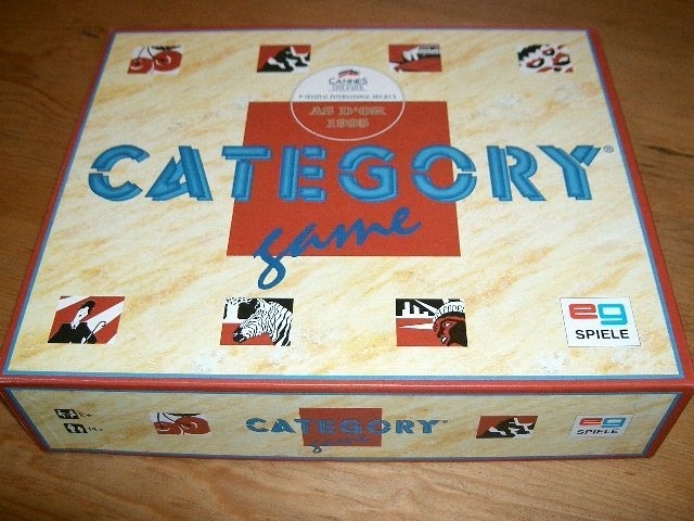 O Category Game é um jogo de festa sobre encontrar palavras: uma grade de plástico 5x5 com 5 cartões de "categoria de palavras" (colocados sobre as colunas) e 5 blocos de letras (colocados na borda esquerda das linhas) é preenchido com 25 bolinhas (cujo valor é 1, 2 ou 3 pontos). Qualquer bola de gude é colocada em uma célula na grade, cuja posição corresponde a uma coluna de categoria e uma linha de letras: você pode pegar a bola de gude encontrando uma palavra na categoria da coluna, começando com a letra na linha.