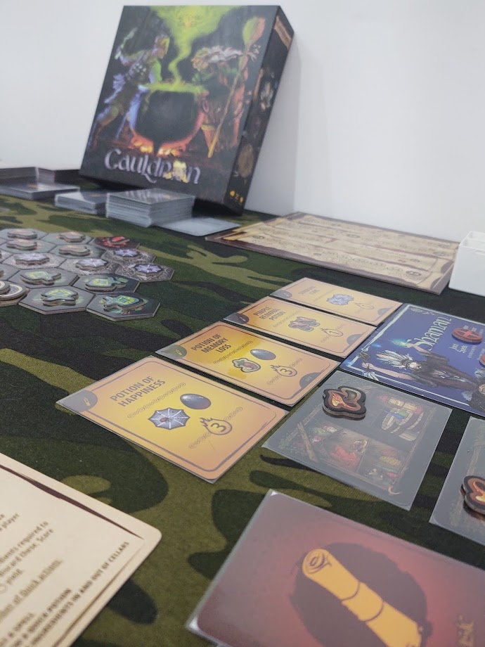 Cauldron é um jogo de tabuleiro competitivo ambientado em um mundo de fantasia. Assumindo papéis de personagens místicos poderosos como Druida, o Shaman ou o Mago, os jogadores farão poções para crescer o seu poder mágico, enquanto lançam feitiços para impedir os outros de ficar à frente. Cauldron é um jogo de gestão de recursos para 2-5 jogadores com idade 10+ em 1 hora.