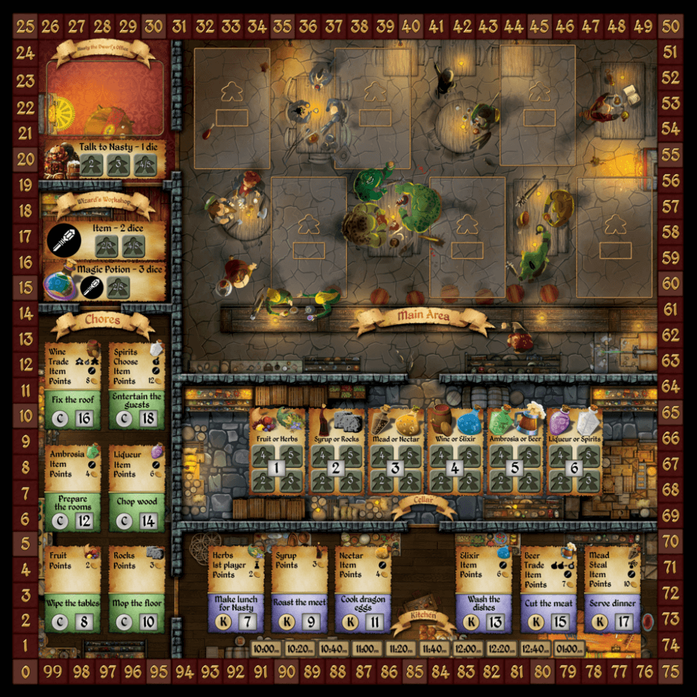 Um jogo de bebidas e brigas para 2-6 jogadores. Cavern Tavern é um jogo de colocação de trabalhadores.