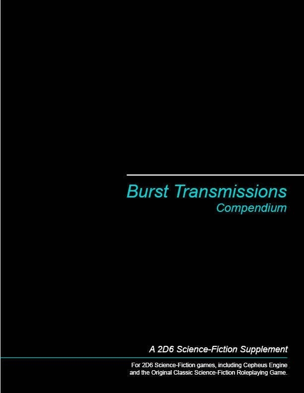 Burst Transmissions são uma série de pequenas modificações sugeridas (“regras da casa”) para Cepheus Engine, Cepheus Deluxe e o Original Science Fiction Roleplaying Game publicado pela primeira vez na década de 1970. Estas regras são facilmente adaptadas a outros jogos 2D6.