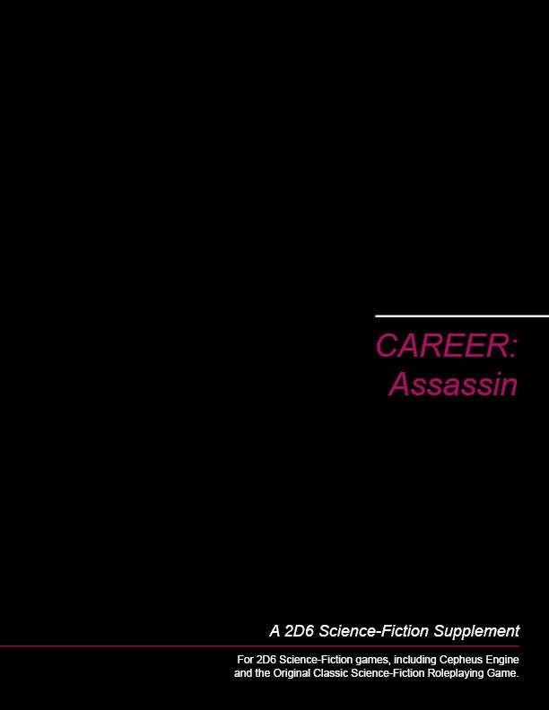 Ao longo da história humana, existiram pessoas dedicadas a acabar com a vida de outras pessoas, quer por mero dinheiro, quer por objectivos mais elevados, como estatuto ou a promessa de recompensa na vida após a morte. Agora, os jogadores de RPG de ficção científica original e Cepheus Engine podem assumir a personalidade de um desses indivíduos mortais. Carreira: Assassinos oferece uma breve visão geral dos assassinos da história, três tipos diferentes de assassinos prontos para geração usando o agora familiar sistema de caminho de vida CE/OSFRPG, novas habilidades, um novo bônus de agrupamento e uma nova habilidade exclusiva para esses mais mortíferos. caçadores.