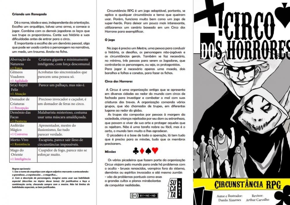 Circunstância RPG é um jogo adaptável, portanto, se aplica a qualquer circunstância e tema que queiram usar. Porém, funciona muito bem como um jogo de super-heróis. Para deixar um pouco mais interessante, utilizaremos um cenário baseado em um Circo dos Horrores para exemplificar.