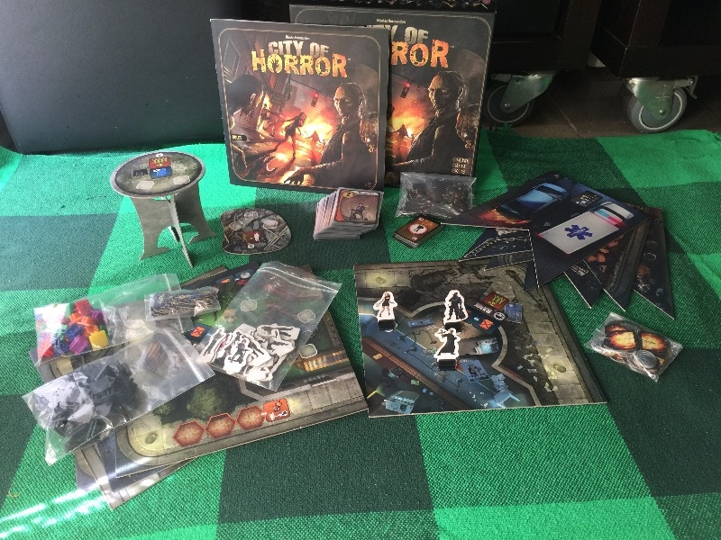 City of Horror é uma reimplementação de Mall of Horror (também desenhado por Nicolas Normandon), e é um jogo de traição e sobrevivência no gênero de horror.