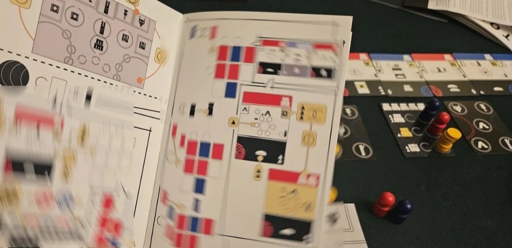 Dentro da caixa você encontrará os componentes necessários para jogar e um livro de regras escrito inteiramente em símbolos e ícones. Você mesmo precisará decifrar as regras do jogo. Você nunca saberá se acertou ou não. Nunca responderemos a quaisquer perguntas sobre regras.