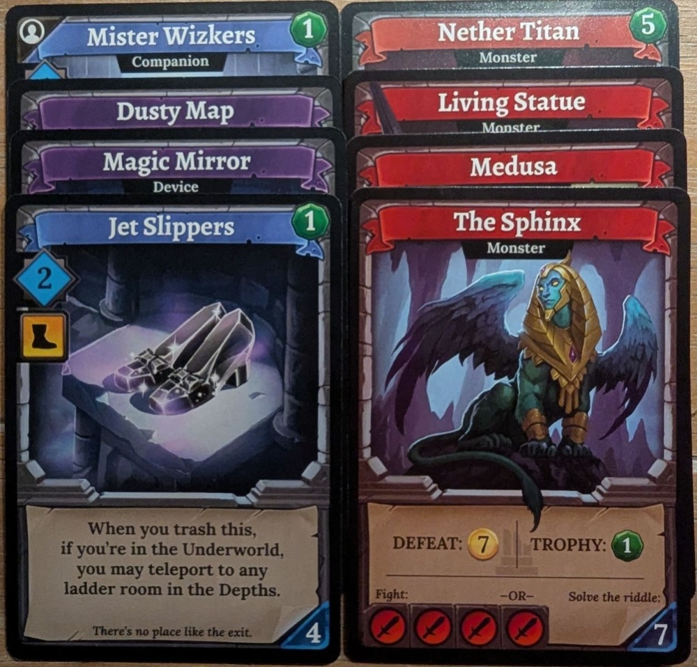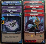 Cartas de referência para a Sphinx, Medusa, e Living Statue da expansão Lairs & Lost Chambers