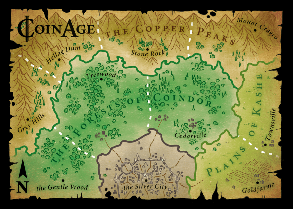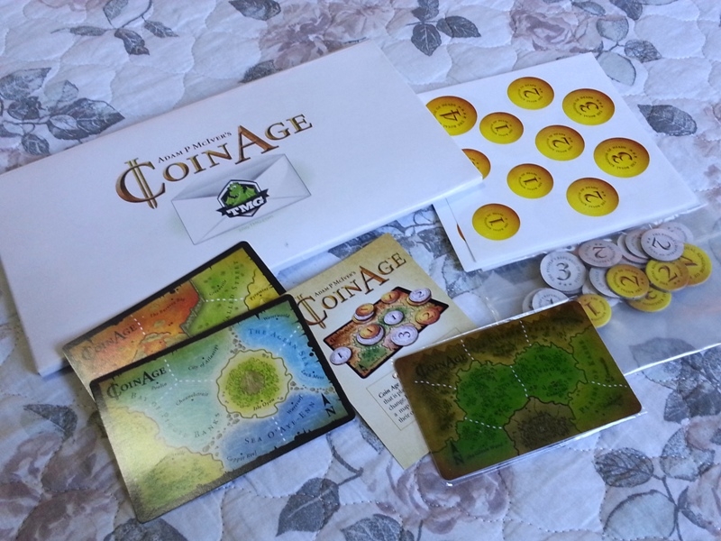 Coin Age é um micro jogo para dois jogadores que é jogado com uma única carta. Os jogadores se revezam colocando moedas em um mapa para controlar os espaços, passar a perna em seu oponente, e marcar pontos de vitória.
