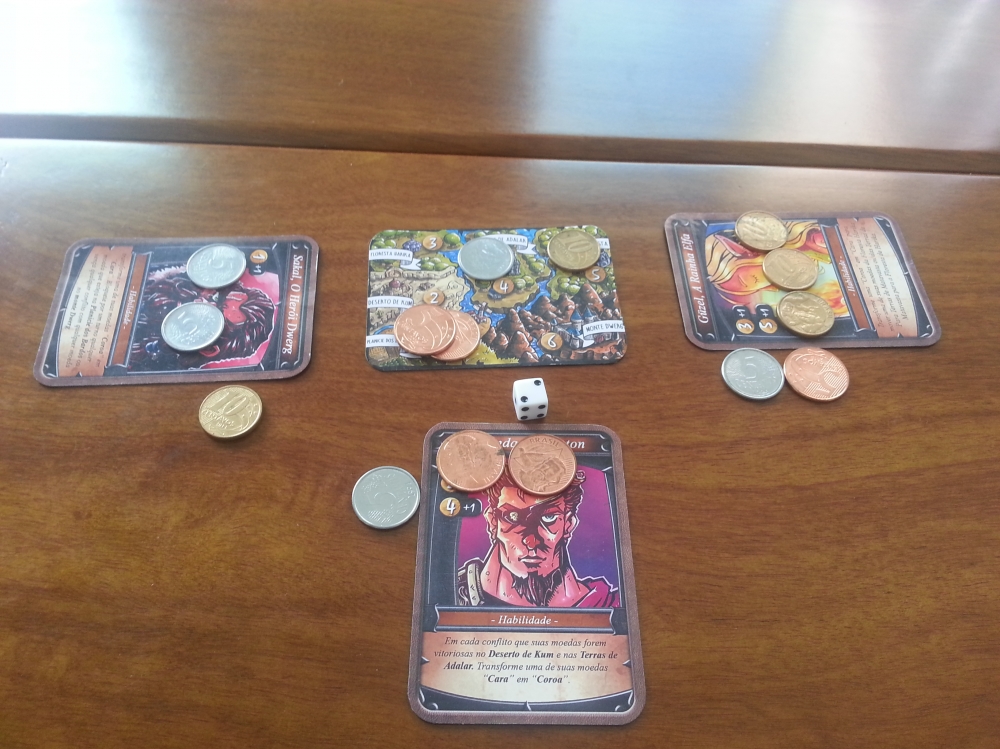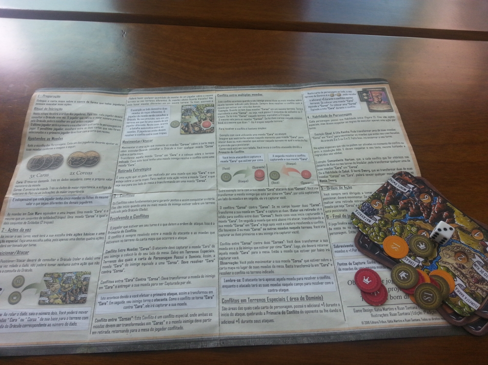 Cada jogador deverá escolher um representantes das três raças disponíveis e utilizar cinco moedas, que sobre a carta mapa se transformam em tropas de soldados prontos para capturar seus inimigos e dominar o continente Ufuk. Mas antes de mover suas tropas, role o dado, pois ele é o sábio oráculo que te guiará pelas suas previsões.
