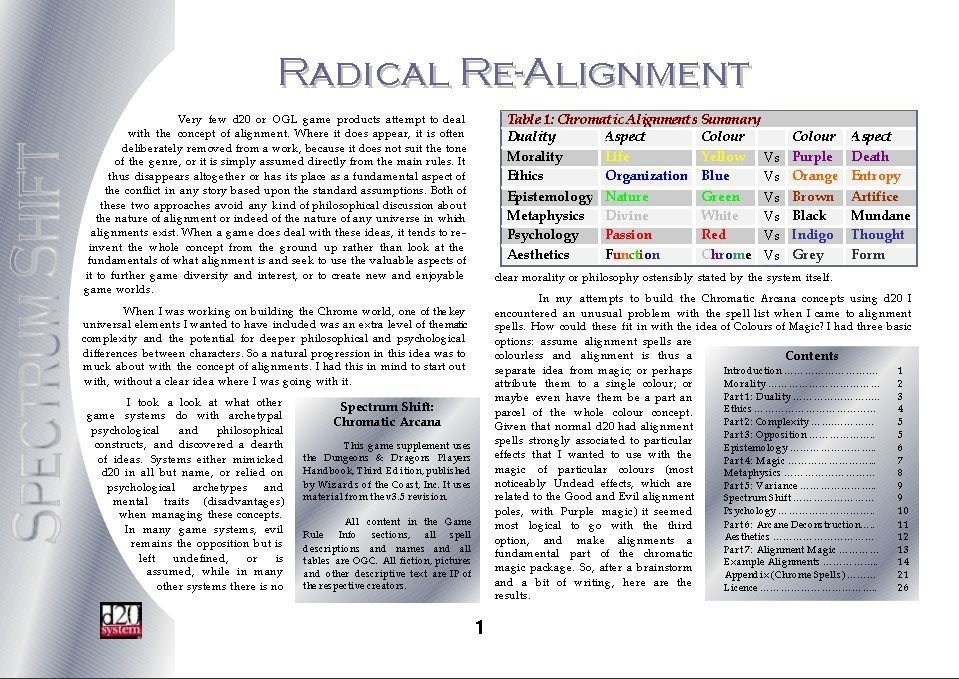 Uma desconstrução da magia de alinhamento padrão e uma reconstrução novamente permitindo a adição rápida e fácil de suas próprias estruturas de alinhamento com os mesmos conceitos básicos de feitiços, incluindo um arquivo de modelo .rtf de 6 páginas para feitiços de alinhamento com instruções sobre como localizar e substituir seus próprios sistemas de alinhamento .