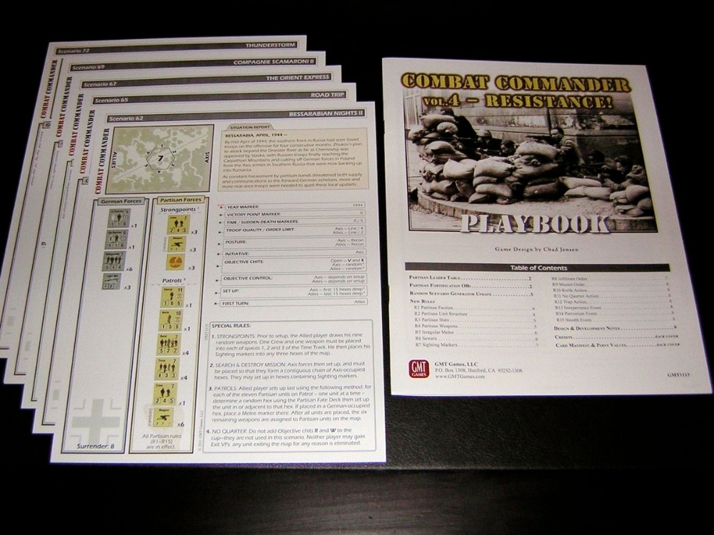 - Além do novo playbook, o jogo inclui 3 mapas de jogo (6 mapas no total), 6 planilhas de dupla face (12 cenários no total), uma folha com contadores (unidades e marcadores), um deck Partisão com 36 cartas. Os novos mapas descrevem locais históricos específicos na Grécia, Herzegovina, Bósnia Oriental, Bielorrússia, Croácia e Bósnia Ocidental.