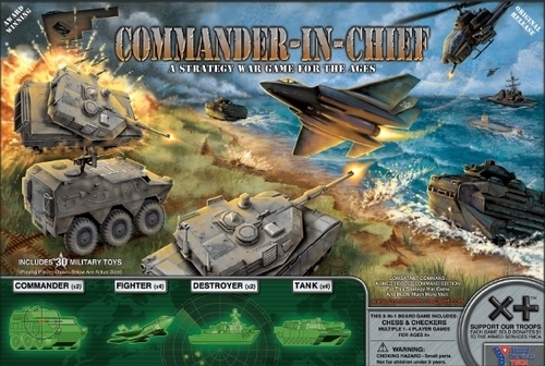 O Commander-In-Chief é um jogo de guerra de estratégia abstrata, divertido e rápido, publicado pela X Plus Products, em que os veículos militares Ar, Terra e Mar de um jogador trabalham como uma equipe unificada de assalto das Forças Armadas para "capturar" o Comandante do seu adversário. O tabuleiro consiste em um tradicional quadrado 8x8 (Xadrez) dividido em duas áreas de terra separadas por uma área de mar. Os veículos são restritos ao movimento dentro de seus campos de batalha atribuídos: através do ar, na terra e/ou no mar.